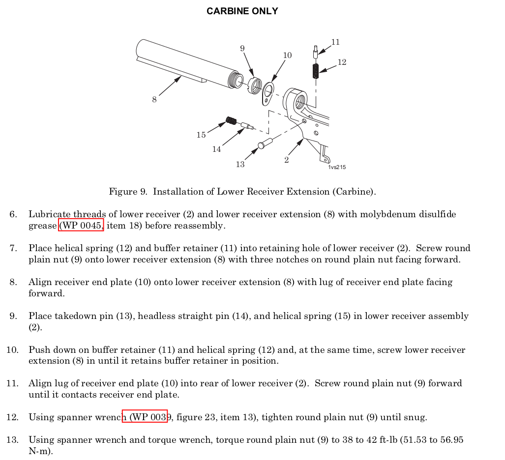AR Lower Receiver Extension (Buffer Tube/Castle Nut) 40 Ft. lbs for both Rifle and Carbine.