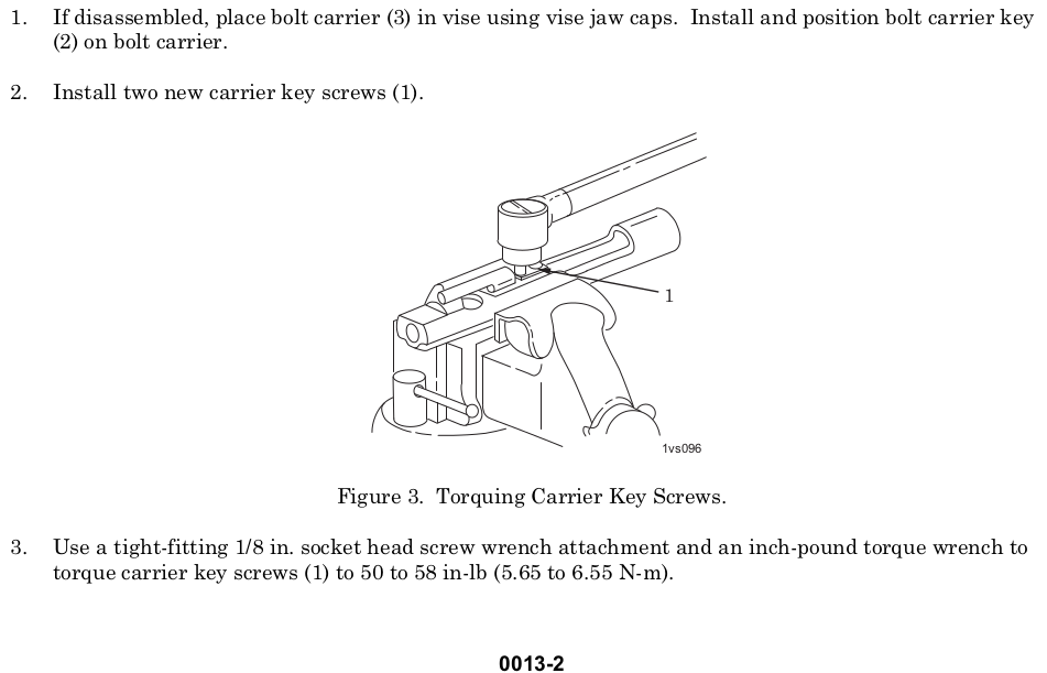 AR Carrier Key Screws, 50-58 INCH pounds torque *1 *2 *3